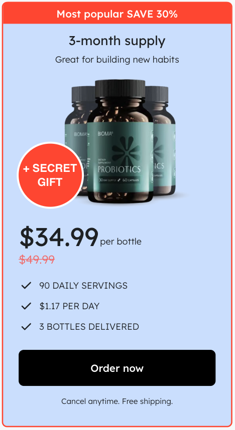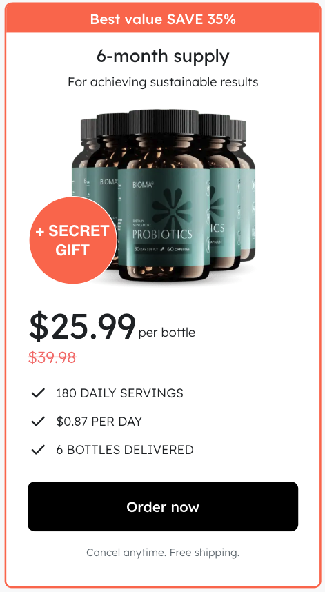 At this moment you can order Bioma Probiotics supplement for 51% OFF . This is a Limited-Time Offer and it won’t be available for long.